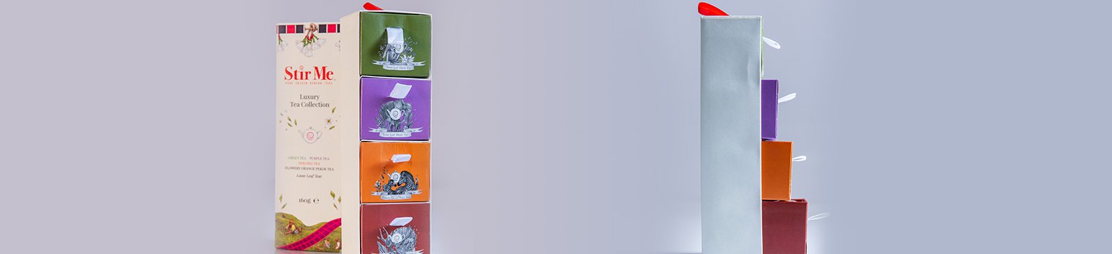 Explore our individual tea collections, each created with a different concept and a unique collection of Kenyan teas. Each popular as a gift or a great way to sample a selection of Stir Me teas. The luxury collection is a best seller with its award winning packaging concept of four individual pull out draws filled with loose leaf teas, a best-selling favorite all year round!